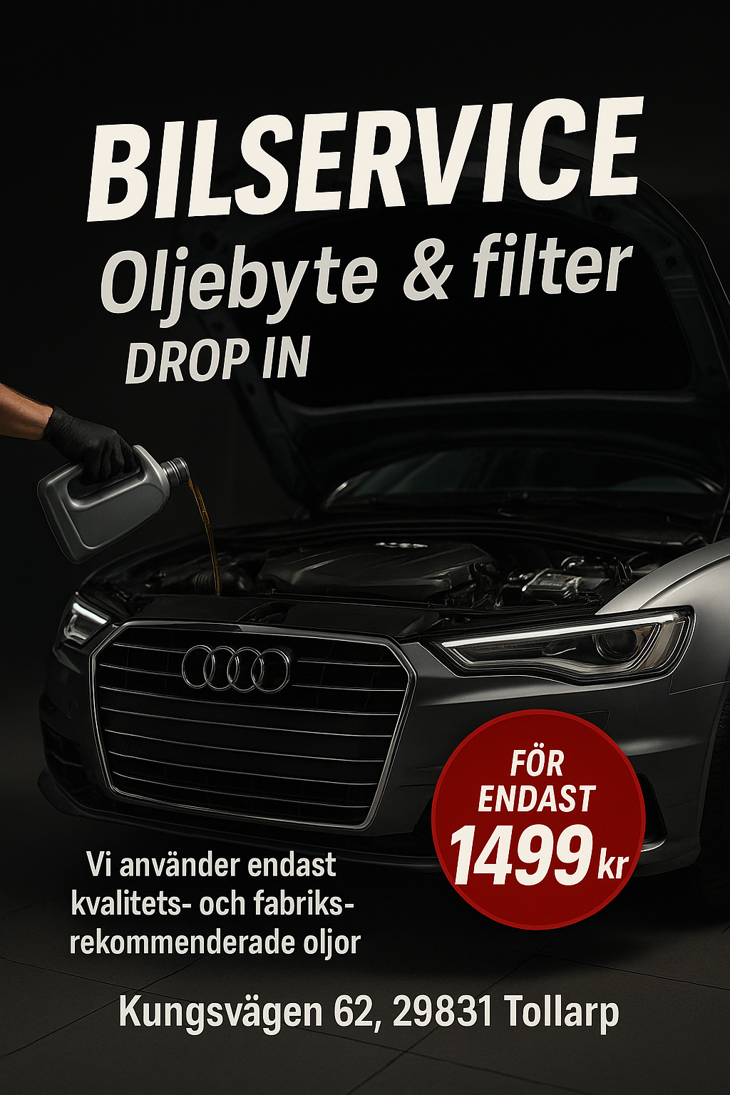 Letar du efter en pålitlig bilverkstad i Kristianstad? Hos Tollarps Bil & Service AB får du prisvärd och personlig service, oavsett om du behöver bilreparation, däckbyte eller bilservice. Vi är din lokala bilpartner – smidig, flexibel och alltid redo att hjälpa dig vidare på vägen.